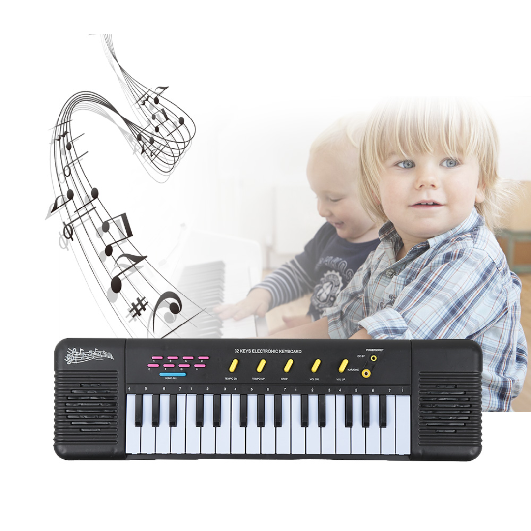 - 32 keys design. 12 demonstration songs, with volume control and tempo control functions
