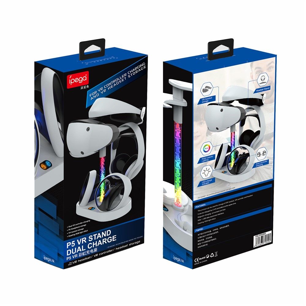 IPEGA PG-P5V001 RGB Light Charger for PS5 VR Headset Charging Display Stand Dual Controller Charging Station
